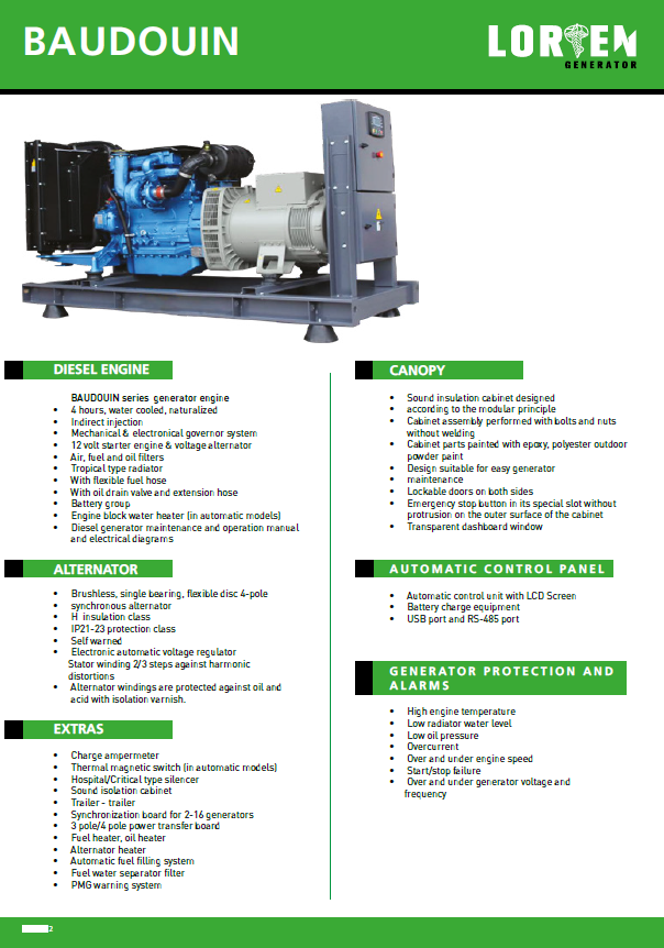 LORİEN , LRC serisi jeneratörlerimiz 35-220KVA güç aralığında talebiniz doğrultusunda kabinli veya kabinsiz şekilde uygun kalite standartlarında üretilmektedir.