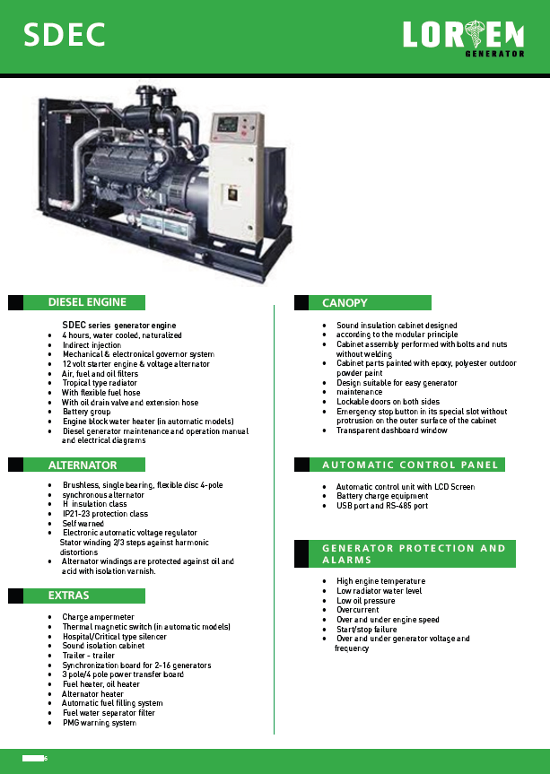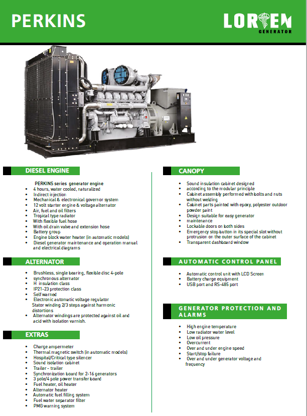 LORİEN, LSD serisi jeneratörlerimiz 250-1100 KVA güçaralığında talebiniz doğrultusunda kabinli veya kabinsiz şekilde uygun kalite standartlarında üretilmektedir.
