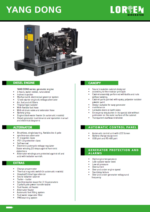 LORIEN , LYD serisi jeneratörlerimiz 13-110 KVA aralığında talebiniz doğrultusunda kabinli veya kabinsiz şekilde uygun kalite standartlarında üretilmektedir.